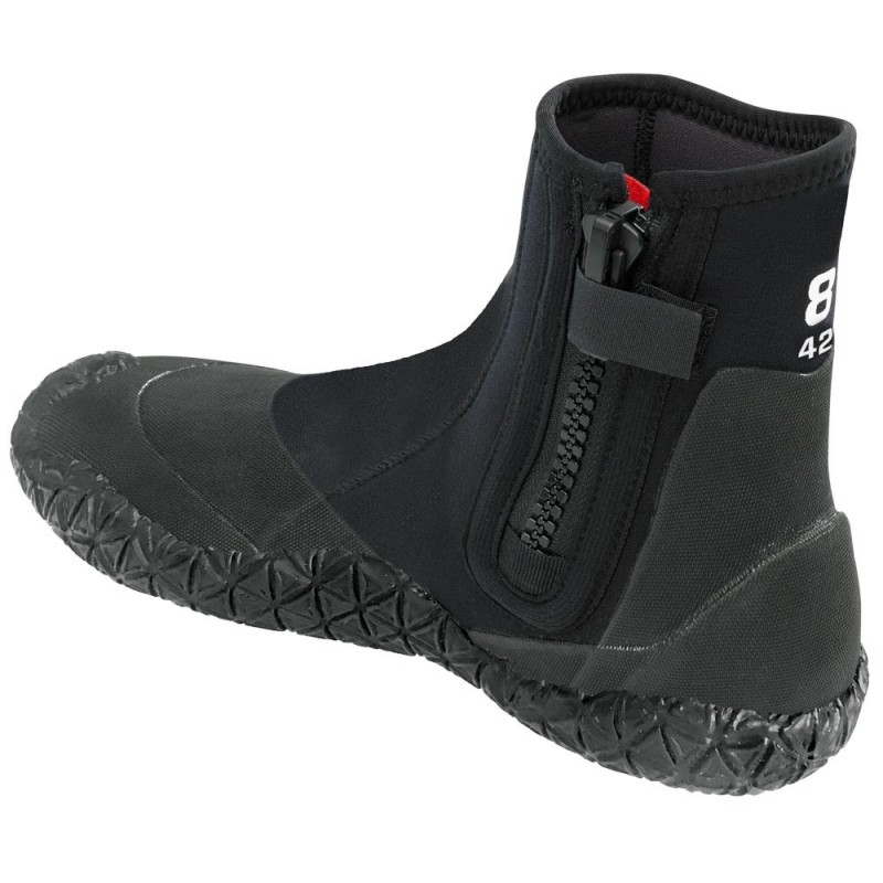 Cholewka z 5 mm neoprenu skutecznie chroni przed zimnem i uderzeniami, a wzmocnienia na palcach i pięcie zabezpieczają stopę przy chodzeniu po kamieniach i podczas wsiadania do pontonu bądź kajaka. Podeszwa zapewnia bardzo dobrą przyczepność na mokrych i śliskich powierzchniach.